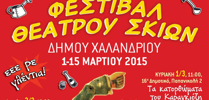 Το Αετοπούλειο Πολιτιστικό Κέντρο και η Διεύθυνση Πολιτισμού του Δήμου Χαλανδρίου, διοργανώνουν το πρώτο χειμερινό φεστιβάλ με θέμα το Θέατρο Σκιών. Το παρελθόν, το παρόν και το μέλλον του Θεάτρου Σκιών μέσα από μια σειρά παραστάσεων και εκδηλώσεων, που θα διαρκέσουν από τη 1 έως τις 15 Μαΐου και θα αγκαλιάσουν όλες τις γειτονιές του Δήμου μας. Μεγάλοι καραγκιοζοπαίκτες, όπως ο διάσημος Άθως Δανέλης, το Θρακικό Θέατρο Σκιών του ακρίτα Δον Σάντσο Βουλτσίδη και ο συμπολίτης μας «Ψυχραιμίας» συναντάνε τη «νέα γενιά», τους τριαντάρηδες Τάσο Γεωργίου, Στάθη Λαγκάδα και Σωκράτη Κοτσορέ, που συνεχίζουν και ανανεώνουν την τέχνη του Θεάτρου Σκιών. Το φεστιβάλ περιλαμβάνει μια εκδήλωση-συζήτηση για το παρελθόν και το μέλλον του καραγκιόζη, καθώς και ένα λαϊκό γλέντι, αναπόσπαστο μέρος της κουλτούρας του… μπερντέ!