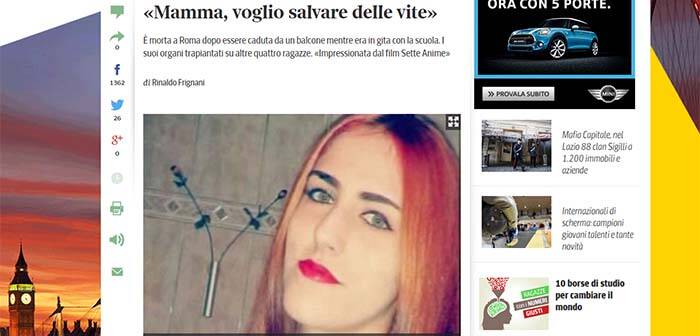 «Η τελευταία επιθυμία της Αναστασίας: Μαμά, θέλω να σώσω ζωές» είναι ο τίτλος του άρθρου, στο οποίο ο δημοσιογράφος Ρινάλντο Φρινιάνι αναφέρει ότι «η καρδιά τής κοπέλας χτυπά στο στήθος μιας νεαρής Ιταλίδας που έχει ακριβώς την ίδια ηλικία και ζει στη Ρώμη».