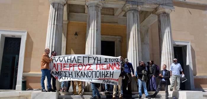 Το πανό έγραφε «αλληλεγγύη στους απεργούς πείνας – άμεση ικανοποίηση των αιτημάτων».