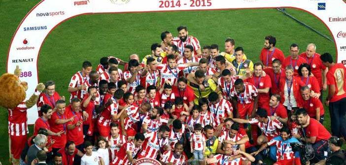 Οι Βαγγέλης Μαρινάκης και Γιάννης Μανιάτης σήκωσαν ψηλά στον ουρανό το τρόπαιο του 42ου τίτλου των Πειραιωτών. Την στιγμή της απονομής έγινε… χαμός! Βροχή από βεγγαλικά και όχι μόνο στο γήπεδο και ενώ τα καπνογόνα έκαναν τη νύχτα… μέρα. Οι παίκτες έκλεισαν την βραδιά με τον καθιερωμένο γύρο του θριάμβου μαζί με την κούπα. Και φυσικά φωτογραφίες, αγκαλιές αλλά και ευτυχισμένες στιγμές με τα παιδιά και τις οικογένειές τους που ήταν στο γήπεδο.