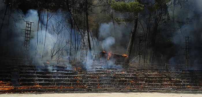 Την ίδια ώρα ο περιφερειάρχης πυροσβεστικής Αττικής είπε πως η Υπηρεσία ενημερώθηκε στις 13:54 για την πυρκαγιά και ότι αμέσως μόλις οι πυροσβέστες έσπευσαν στο σημείο είδαν να καίγεται μέρος του θεάτρου και μάλιστα πολύ γρήγορα.