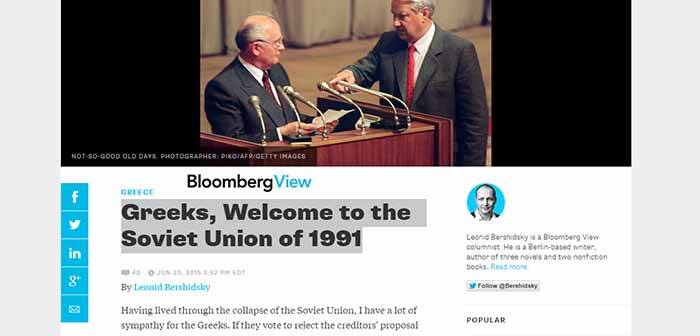 Διαβάστε ολόκληρο το άρθρο του Λεονίντ Μπερσίντσκι στο Bloomberg View με τίτλο «Greeks, Welcome to the Soviet Union of 1991» στα αγγλικά πατώντας ΕΔΩ