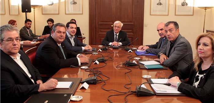 Κατά πληροφορίες, οι πολιτικοί αρχηγοί θα καταλήξουν σε κοινό κείμενο, στο οποίο θα συμφωνούν πάνω στα επόμενα βήματα και τα αιτήματα της ελληνικής κυβέρνησης στο πλαίσιο της επανεκκίνησης της διαπραγμάτευσης με τους δανειστές.