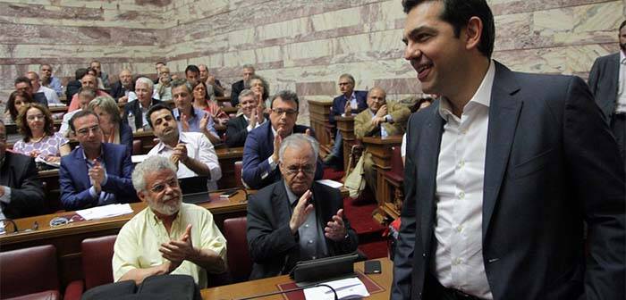 “Στις 12 Ιουλίου συντελέστηκε στις Βρυξέλλες ένα πραξικόπημα που απέδειξε ότι στόχος των ευρωπαϊκών ηγεσιών ήταν η παραδειγματική εξόντωση ενός λαού που οραματίστηκε ότι μπορεί να ακολουθηθεί ένας άλλος δρόμος πέραν και έξω από το νεοφιλελεύθερο μοντέλο της ακραίας λιτότητας. Ένα πραξικόπημα που στρέφεται ευθέως εναντίον κάθε έννοιας δημοκρατίας και λαϊκής κυριαρχίας.