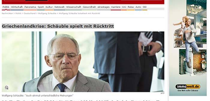 Διαβάστε το άρθρο του Der Spiegel με τίτλο «Griechenlandkrise: Schäuble spielt mit Rücktritt» με τις απόψεις του Wolfgang Schäuble στα γερμανικά πατώντας ΕΔΩ