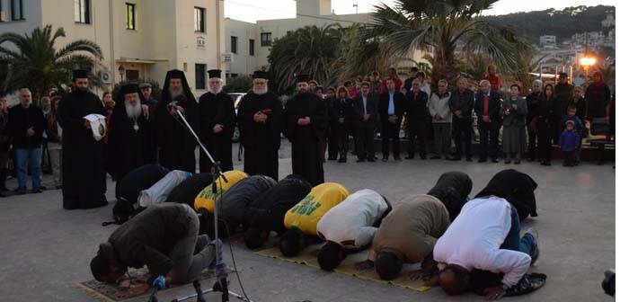 Μια συγκλονιστική σκηνή διαδραματίστηκε στη Λέσβο: Δύο θρησκείες, η ορθόδοξη και η μουσουλμανική ενώθηκαν μπροστά στο δράμα των προσφύγων.