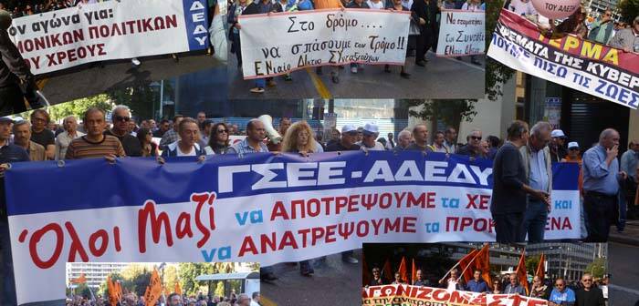 Ολοκληρώθηκαν οι συγκεντρώσεις και οι πορείες που πραγματοποίησαν το ΠΑΜΕ, η ΓΣΕΕ, η ΑΔΕΔΥ και η εξωκοινοβουλευτική αριστερά στο κέντρο της Αθήνας, στο περιθώριο της σημερινής γενικής 24ωρης απεργίας. Περισσότεροι από 25.000 οι διαδηλωτές, σύμφωνα με εκτιμήσεις.Γύρω στο μεσημέρι στη Βουλή βρέθηκαν οι διαδηλωτές της ΓΣΕΕ και της ΑΔΕΔΥ, μετά την πορεία που ξεκίνησε από την πλατεία Κλαυθμώνος.