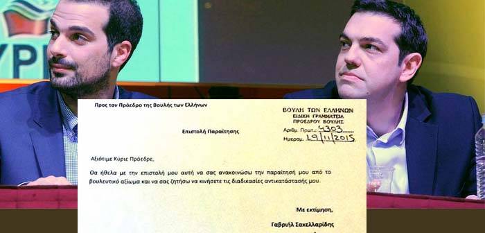 Την παραίτηση του Γαβριήλ Σακελλαρίδη από το βουλευτικό αξίωμα ζήτησε ο πρωθυπουργός Αλέξη Τσίπρας.