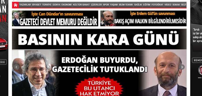 Ο Τζαν Ντιουντάρ, αρχισυντάκτης της κεμαλικής εφημερίδας Τζουμχουριέτ, όπως και ο Ερντέμ Γκιουλ, ο επικεφαλής του γραφείου της εφημερίδας Άγκυρα, κατηγορούνται για «κατασκοπεία» και «αποκάλυψη κρατικών απορρήτων», διότι είχαν δημοσιεύσει τον Μάιο ένα άρθρο που αναφερόταν σε παραδόσεις όπλων από την υπηρεσία κατασκοπείας της Τουρκίας, τη MİT, σε αντάρτες στη Συρία.