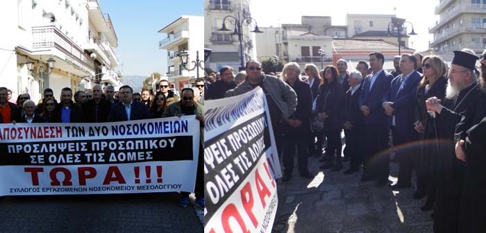 Με μαζική συμμετοχή πολιτών και εκπροσώπων φορέων ολοκληρώθηκε σήμερα στην κεντρική πλατεία του Μεσολογγίου, το παναιτωλοακαρνανικό συλλαλητήριο για τα Νοσοκομεία Μεσολογγίου και Αγρινίου καθώς και τις δομές υγείας στο νομό.