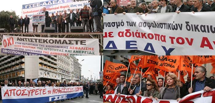 Οι απεργιακές συγκεντρώσεις των ΓΣΕΕ και ΑΔΕΔΥ ξεκίνησαν το πρωί από την Ομόνοια και την πλατεία Κλαυθμώνος, για να καταλήξουν έξω από τη Βουλή.