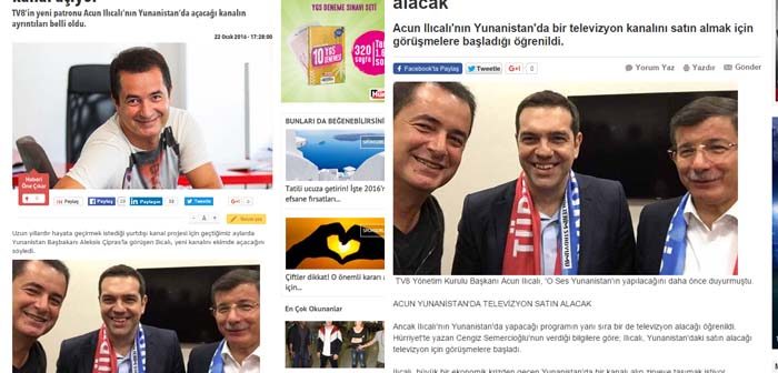 Επιβεβαιώνει τις συνομιλίες του ο Τούρκος καναλάρχης και παρουσιαστής τηλεοπτικών εκπομπών Ατζούν Ιλίτζαλι (Acun Ilıcalı) με τον πρωθυπουργός κ Τσίπρα. Αυτό έγινε σε επικοινωνία που είχε η εφημερίδα Ελεύθερος Τύπος που συνομίλησε με το πρόσωπο των ημερών, αποκαλύπτοντας τις επιχειρηματικές του προθέσεις αλλά και τη συνάντηση που είχε με τον Έλληνα πρωθυπουργό, Αλέξη Τσίπρα.