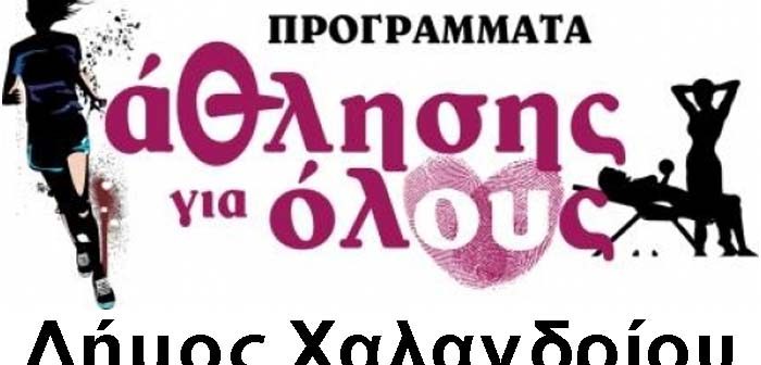 Ο Δήμος Χαλανδρίου, στο πλαίσιο των αθλητικών δραστηριοτήτων του, διοργανώνει σε συνεργασία με την Γενική Γραμματεία Αθλητισμού, τα προγράμματα «Άθληση για Όλους».