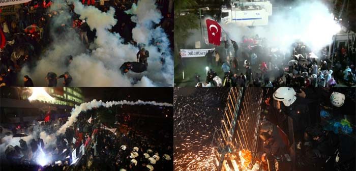 Η τουρκική δικαιοσύνη ενώ λίγες ώρες αργότερα η αστυνομία θα χρησιμοποιούσε κλομπς και χημικά για να διαλύσει τη συγκέντρωση δημοσιογράφων και πολιτών στα γραφεία της εφημερίδας.