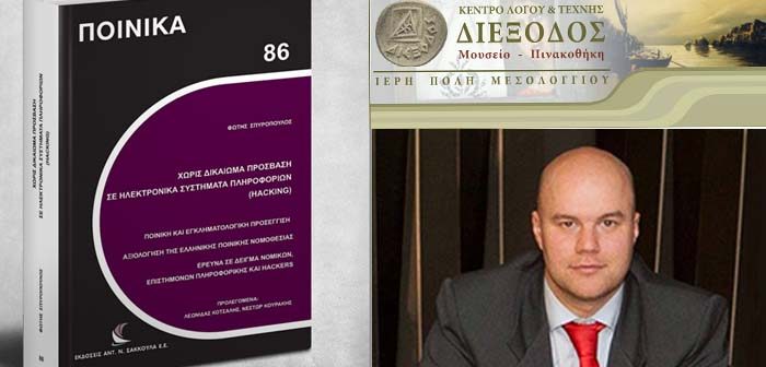 Το Σάββατο 11 Ιουνίου στις 8 το βράδυ θα πραγματοποιηθεί στο Ιστορικό Μουσείο «Διέξοδος» στην Ιερή Πόλη του Μεσολογγίου η παρουσίαση του επιστημονικού βιβλίου του Δρ. Φώτη Σπυρόπουλου “Χωρίς δικαίωμα πρόσβαση σε ηλεκτρονικά συστήματα πληροφοριών (hacking)“.