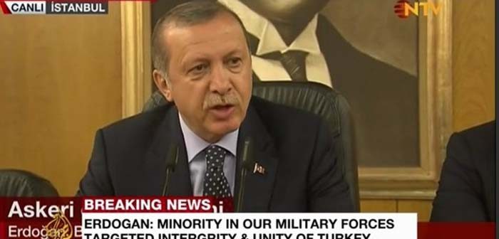 Προανήγγειλε εκκαθάριση στο στράτευμα από στοιχεία που επιθυμούν πραξικοπήματα και πρόσθεσε: «Δεν έχουν καταλάβει ότι δεν πρόκειται για την παλιά Τουρκία. Η Τουρκία κινείται μέσα σε ένα πλαίσιο Αρχών».