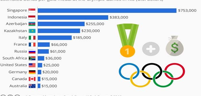 Πιο αναλυτικά, όπως γράφει το marketwatch.com, όσοι «χρυσοί» Ολυμπιονίκες κατάγονται από τη Σιγκαπούρη θα λάβουν ούτε λίγο ούτε πολύ το ποσό των 753.000 δολαρίων δηλαδή γύρω στα 668.000 ευρώ.