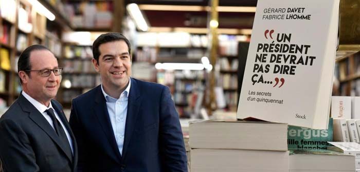 Οι συγγραφείς αφιερώνουν ένα μεγάλο κεφάλαιο στην ελληνική κρίση του καλοκαιριού του 2015, όταν η Ελλάδα, με πρωθυπουργό τον Αλέξη Τσίπρα, βρέθηκε μια ανάσα από την έξοδο από την ΕΕ -το περιβόητο Grexit. Αλλά ο Ολάντ δεν ήθελε καν ν’ ακούσει για ένα τέτοιο ενδεχόμενο.