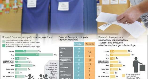 Τη μαζική αποχώρηση των ψηφοφόρων από τον ΣΥΡΙΖΑ, την παγίωση της διαφοράς υπέρ της Ν.Δ., αλλά και μαζική έξοδο των ψηφοφόρων και από την κάλπη, καταγράφει ο «Σφυγμός» του Οκτωβρίου, η δεύτερη μηνιαία έρευνα της Prorata για λογαριασμό της «Εφημερίδας των Συντακτών».