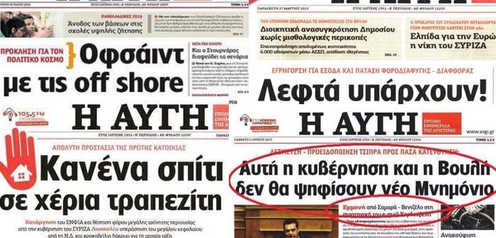 Σύμφωνα με τις ίδιες πληροφορίες το σημερινό Δ.Σ της Αυγής έδωσε ολιγοήμερη διορία στον μέτοχο (ΣΥΡΙΖΑ) να απαντήσει με ποιο τρόπο θα αντιμετωπιστούν οι οικονομικές αδυναμίες της εφημερίδας, αλλά και σειρά άλλων ζητημάτων που σχετίζονται με τις πιέσεις που ασκούνται για τη δημοσιογραφική κάλυψη των θεμάτων που αφορούν στην κυβέρνηση και στο κόμμα.