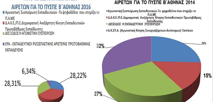 | Α.Κ.ΣΥ.Α. (Αγωνιστική Κίνηση Συνεργαζόμενων-Αυτόνομων) Εκπ/κών | 844 | 31,84% |