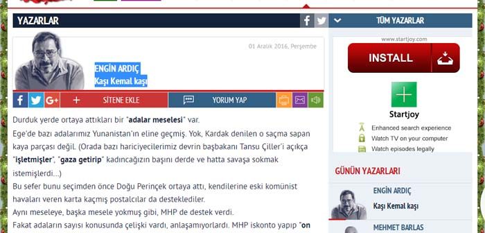 Ο έγκριτος δημοσιογράφος, Ενγκίν Αρντίτς, μέσα από την τακτική του στήλη στην φιλο- κυβερνητική και φιλο-ερντογανική εφημερίδα «Sabah» επικρίνει τον αρχηγό της αξιωματικής αντιπολίτευσης Κεμάλ Κιλιτσντάρογλου, για το θέμα των 18 νησιών που διεκδικεί. Στο άρθρο με τίτλο «Προκάλεσε Κεμάλ, προκάλεσε» γράφει, μεταξύ άλλων, τα εξής: