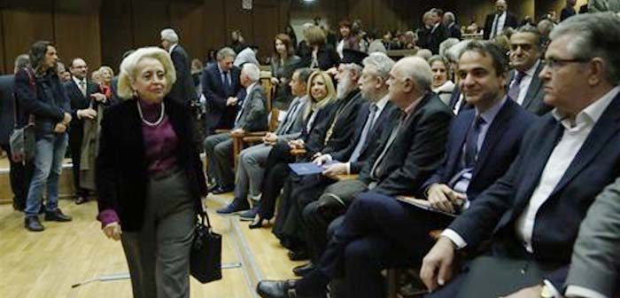 Παραβρέθηκαν ο υπουργός Δικαιοσύνης Σταύρος Κοντονής, ο πρόεδρος της ΝΔ Κυριάκος Μητσοτάκης,η επικεφαλής της Δημοκρατικής Συμπαράταξης Φώφη Γεννηματά, ο γενικός γραμματέας του ΚΚΕ Δημήτρης Κουτσούμπας,ο επικεφαλής του Ποταμιού Σταύρος Θεοδωράκης, ο πρόεδρος της Ένωσης Κεντρώων Βασίλης Λεβέντης,o πρώην υπηρεσιακός πρωθυπουργός Παναγιώτης Πικραμμένος, η πρόεδρος του Αρείου Πάγου Βασιλική Θάνου, η εισαγγελέας Ξένη Δημητρίου.