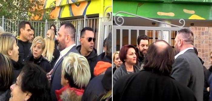 Σύμφωνα με πληροφορίες, ομάδα Χρυσαυγιτών με επικεφαλής τον υπόδικο βουλευτή Γιάννη Λαγό πήγε στο σχολείο ενώ ήταν προγραμματισμένη συνεδρίαση καθηγητών και γονέων προκειμένου να αποφασιστεί αν τα προσφυγόπουλα θα μετέχουν στα απογευματινά μαθήματα του σχολείου.