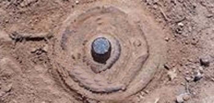 Η νάρκη εντοπίσθηκε σήμερα το μεσημέρι από παιδιά που έπαιζαν στον χώρο και πιθανόν να είναι ενεργή μιας και διαφαίνεται οπτικά ότι δεν έχει διαβρωθεί.