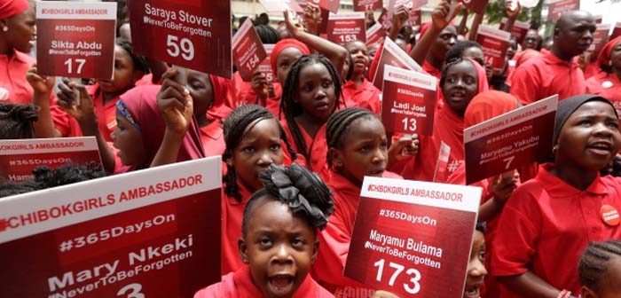 Τον Απρίλιο του 2014 περίπου διακόσιες μαθήτριες απήχθησαν από μέλη της τζιχαντιστικής οργάνωσης, εξέλιξη που προκάλεσε παγκόσμια κατακραυγή. Οι μαζικές απαγωγές παιδιών, γυναικών και ανδρών στα χωριά εναντίον των οποίων εξαπολύει επιθέσεις η Μπόκο Χαράμ είναι ιδιαίτερα συχνές. Κατόπιν, πολλά από τα παιδιά που απάγονται αναγκάζονται να πολεμούν στις τάξεις της οργάνωσης.