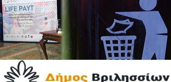 Ο Δήμος Βριλησσίων – από κοινού με ευρωπαϊκούς δήμους τριών χωρών (Ελλάδα, Πορτογαλία, Κύπρος) Λισαβόνας, Λάρνακας, Αβέιρο και Κοντέισα Νόβα και τριών ακαδημαϊκών ιδρυμάτων, του Πολυτεχνείο (Ε.Μ.Π.), του Πανεπιστημίου και του Πολυτεχνείου της Κοΐμπρα – συμμετέχει στο έργο LIFE PAYT, ένα εργαλείο για τη μείωση των απορριμμάτων στη Νότια Ευρώπη, με βάση το 7ο Πρόγραμμα Δράσης για το Περιβάλλον, το οποίο προωθεί εναλλακτικές μορφές διαχείρισης απορριμμάτων, προκειμένου να εφαρμοστεί ένα πιο δίκαιο σύστημα κοστολόγησης των υπηρεσιών που συνδέονται με την παραγωγή απορριμμάτων και βαρύνουν τον κάθε πολίτη.