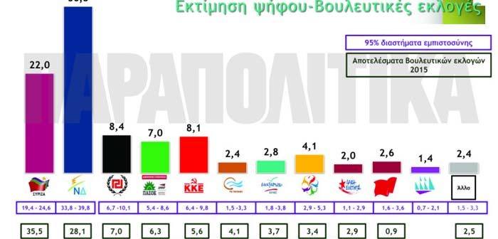 Στην δημοσκόπηση που έγινε για λογαριασμό της εφημερίδας Παραπολιτικά, και η εκτίμηση ψήφου έχει ως εξής:
