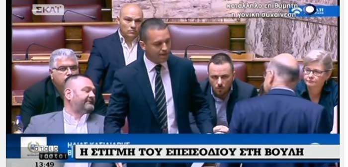 Αρνητικός πρωταγωνιστής έγινε ξανά το φασιστοειδές της Χρυσής Αυγής, Ηλίας Κασιδιάρης, ο οποίος πλέον δεν χρησιμοποιεί μόνο λεκτικούς προπηλακισμούς, αλλά φτάνει και στο σημείο να χειροδικεί εναντίον βουλευτή μέσα στο  Ελληνικό Κοινοβουλίου.
