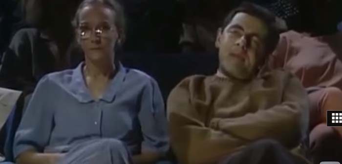 Πρόκειται για απόσπασμα από τη δημοφιλή κωμική σειρά, στο οποίο ο Ρόουαν Ατκινσον– που ενσαρκώνει τον ήρωα- είναι στον κινηματογράφο και αντιδρά έντρομος σε αυτά που στη συγκεκριμένη περίπτωση, που ακούει.