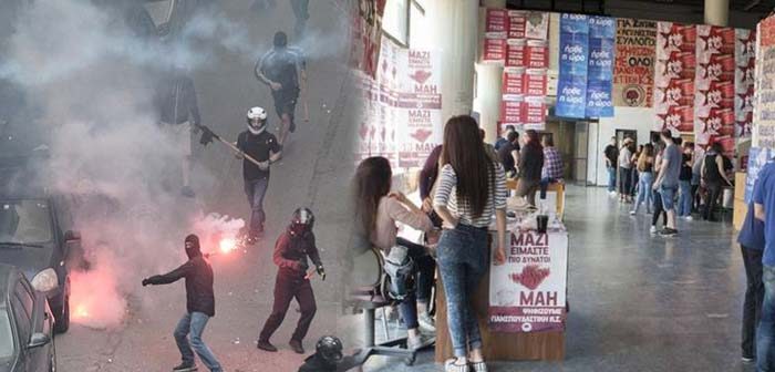 Στόχος ομάδας νεαρών με καλυμμένα πρόσωπα έγιναν και φοιτητές- μέλη της παράταξης ΔΑΠ-ΝΔΦΠ, στο Αριστοτέλειο Πανεπιστήμιο Θεσσαλονίκης (ΑΠΘ).