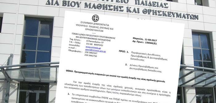 Για την ομαλή έναρξη της νέας σχολικής χρονιάς, αναγκαία προϋπόθεση είναι η ολοκλήρωση των τοποθετήσεων όλων των μονίμων εκπαιδευτικών και στη συνέχεια η πρόσληψη του αναγκαίου αριθμού αναπληρωτών. Προς τούτο, παρακαλούμε όπως: