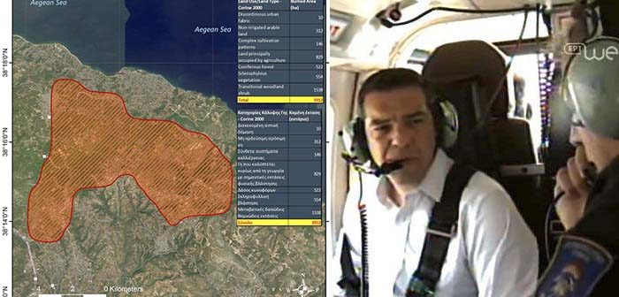 Να υπενθυμίσουμε ότι ο πρωθυπουργός πέταξε χθες με ελικόπτερο της πυροσβεστικής πάνω από τα καμένα -ενώ όσες ημέρες έκαιγε η φωτιά δεν είχε εμφανιστεί καθόλου παραμόνο μία φορά στο twitter – και στη συνέχεια μίλησε για «περιορισμένη» καταστροφή.