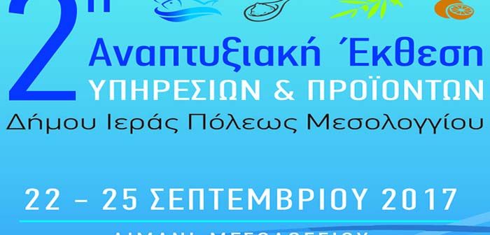 Η 2η Αναπτυξιακή Έκθεση Υπηρεσιών & Προϊόντων Δήμου Ιεράς Πόλεως Μεσολογγίου, που θα λειτουργήσει πλέον ως το μεγαλύτερο εμπορικό και επιχειρηματικό γεγονός της πόλης του Μεσολογγίου, της ευρύτερης περιοχής Αιτωλοακαρνανίας καθώς και ολόκληρης της Δυτικής Ελλάδας, ετοιμάζεται να ανοίξει τις πύλες της στις 22 Σεπτεμβρίου 2017.