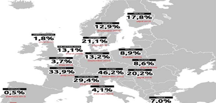 - Ελβετία: 29,4% στις εκλογές του 2016 και πρώτο κόμμα το ακροδεξιό Swiss People’s Party της χώρας