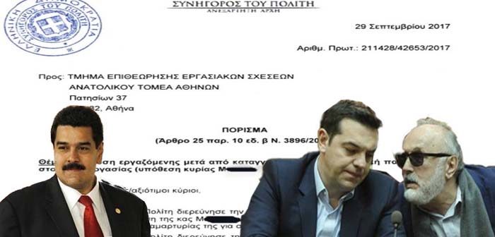 Όπως αποκαλύπτει ο Ελεύθερος Τύπος της Κυριακής, στο ρεπορτάζ του Ιάσονα Πιπίνη, ο Συνήγορος του Πολίτη στο πόρισμα του αναγνωρίζει ότι ο πρώην πρέσβης της Βενεζουέλας Φρανκλίν Γκονζάλες παρενοχλούσε σεξουαλικά εργαζόμενες της πρεσβείας και συνδέει άμεσα την απόλυση τους (δυο χρόνια μετά) με την καταγγελία που είχαν κάνει στην κυβέρνηση της Βενεζουέλας εναντίον του πρέσβη, σημειώνοντας μάλιστα πως υπάρχουν σοβαρές ενδείξεις πως η απόλυση είναι άκυρη ως καταχρηστική «διότι ασκήθηκε για λόγους εκδίκησης». Μάλιστα αναφέρεται αναλυτικά και στον ρόλο που έπαιξε ο κ. Τσίπρας με την παρέμβαση του στον πρόεδρο της Βενεζουέλας.