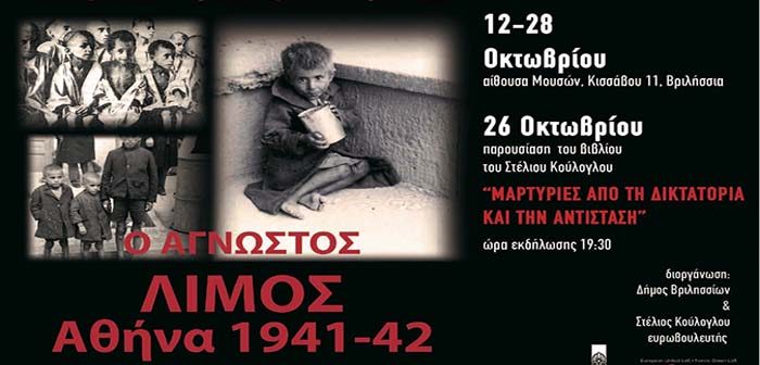 Δήμος Βριλησσίων: Έκθεσης φωτογραφίας για τον Άγνωστο Λιμό της Αθήνας 1941-42 – Παρουσίαση του βιβλίου Στέλιου Κούλογλου.