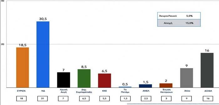 - ΣΥΡΙΖΑ 18,5% (18%)