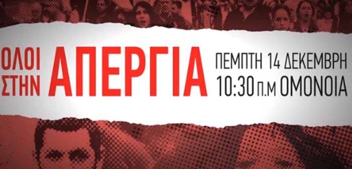 Το σποτάκι καλεί σε συμμετοχή στην απεργία στις 14 Δεκεμβρίου για τη διεκδίκηση συλλογικής σύμβασης, κατώτατο μισθό στα 751 ευρώ, κλαδικές συμβάσεις με αυξήσεις και απαγόρευση των πλειστηριασμών.