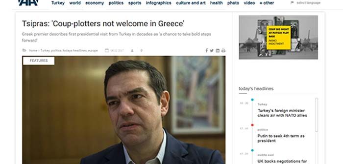 Ολόκληρη τη συνέντευξη του Αλέξη Τσίπρα στο τούρκικο πρακτορείο Anadolu με τίτλο «Tsipras: ‘Coup-plotters not welcome in Greece’» στα αγγλικά, πατώντας ΕΔΩ