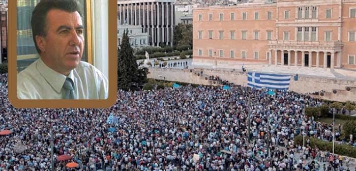 Γκρινιάζαμε μέχρι τώρα ότι με τα τόσα και τόσα που συμβαίνουν οι Έλληνες εξακολουθούσαν να είναι στον καναπέ και να δέχονται αδιαμαρτύρητα καθετί που αμαυρώνει τη ζωή τους. Και διαπιστώσαμε ότι η κατάσταση δεν είναι καθόλου τέτοια. Βλέπαμε την επιφάνεια των πραγμάτων και αγνοούσαμε τι υπάρχει από κάτω. Θα ήθελα να συγκρίνουμε τα συλλαλητήρια των δύο τελευταίων μορφών στην πολιτική ζωή μας. Με την απαρχή των μνημονίων αναπτύχθηκε ένα κίνημα αγανακτισμένων της κάτω και της άνω πλατείας του Συντάγματος. Τι εξέφρασε αυτό το κίνημα: την κοινοβουλευτική μούντζα, τους προπηλακισμούς, τη βία και τον πολιτικό και εθνικό διχασμό. Και τι έδωσε τελικά ως ιστορικό αποτύπωμα αυτό το κίνημα, την εξαφάνιση του πολιτικού κέντρου και την ενίσχυση των άκρων με την ανάπτυξη του ΣΥ.ΡΙΖ.Α. του 3% σε πρώτο κόμμα και της Χρυσής Αυγής σε 3ο κόμμα στη Βουλή. Και ποια είναι η περαιτέρω συνέχεια; Η εμβάθυνση η ενίσχυση της κρίσης για δεκαετίες και δεκαετίες.