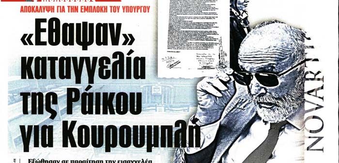 Σύμφωνα με τον υπουργό «το έγγραφο που εμφανίζεται να αποστέλλει η πρώην εισαγγελέας Διαφθοράς Ελένη Ράικου στον αντιεισαγγελέα Πρωτοδικών Ιωάννη Σέβη δεν είναι τίποτα άλλο παρά η καταγγελία του ανώνυμου μάρτυρα».