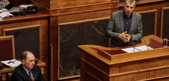 Ο επικεφαλής του Ποταμιού άνοιξε την παρέμβασή του λέγοντας ότι η ΔΕΗ είναι ο καθρέφτης της χώρας. «Είναι το οικονομικό θαύμα της δεκαετίας του ΄50. Είναι η εταιρεία που έφερε το ρεύμα και τον πολιτισμό στην πιο απομακρυσμένη περιοχή της χώρας, είναι οι καπνισμένοι εργάτες στα ορυχεία, οι εναερίτες, τα γκρίζα χωριά της Πτολεμαϊδας, τα φουγάρα στη Μεγαλόπολη.»