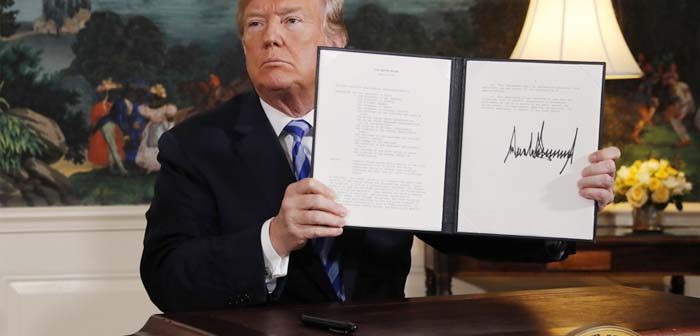 Με την απόφασή το αυτή υλοποίησε, δεκαπέντε μήνες μετά την έλευσή του στην εξουσία, την προεκλογική του υπόσχεση να «σκίσει» το κείμενο της εμβληματικής συμφωνίας, προϊόν 21 μηνών σκληρών διεθνών διαπραγματεύσεων με απώτερο στόχο να εμποδιστεί η Τεχεράνη να αποκτήσει πυρηνικά όπλα.