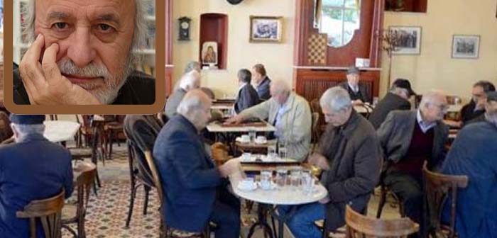 Πολλοί ηλικιωμένοι μαζεύονται στα καφενεία της γειτονιάς και καταναλώνουν πολύ χρόνο στο θέμα τού γήρατος και της ανημπόριας, στις φαρμακευτικές αγωγές, κι όλα αυτά τα μετασχηματίζουν σε καλαμπούρι και φτάνουν, απαραιτήτως, στην αποθηκευμένη μνήμη τού… σεξ, το οποίο λειτουργεί τουλάχιστον ως… μακρινή θύμηση. Βεβαίως, με το μάτι σε κάθε κορίτσι που περπατάει έξω από το κάθε στέκι, μια διάσταση που δε μπορεί να λείπει, μαζί με τα ανάλογα περιπαιχτικά σχόλια. Κατάσταση μονιμότητας…