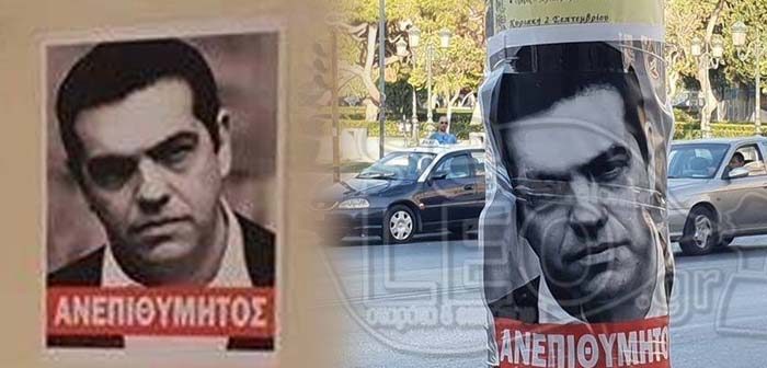Έχει ο καιρός γυρίσματα: Αφίσα με τη λέξη «ανεπιθύμητος» και τη φωτογραφία του Τσίπρα στη Θεσσαλονίκη